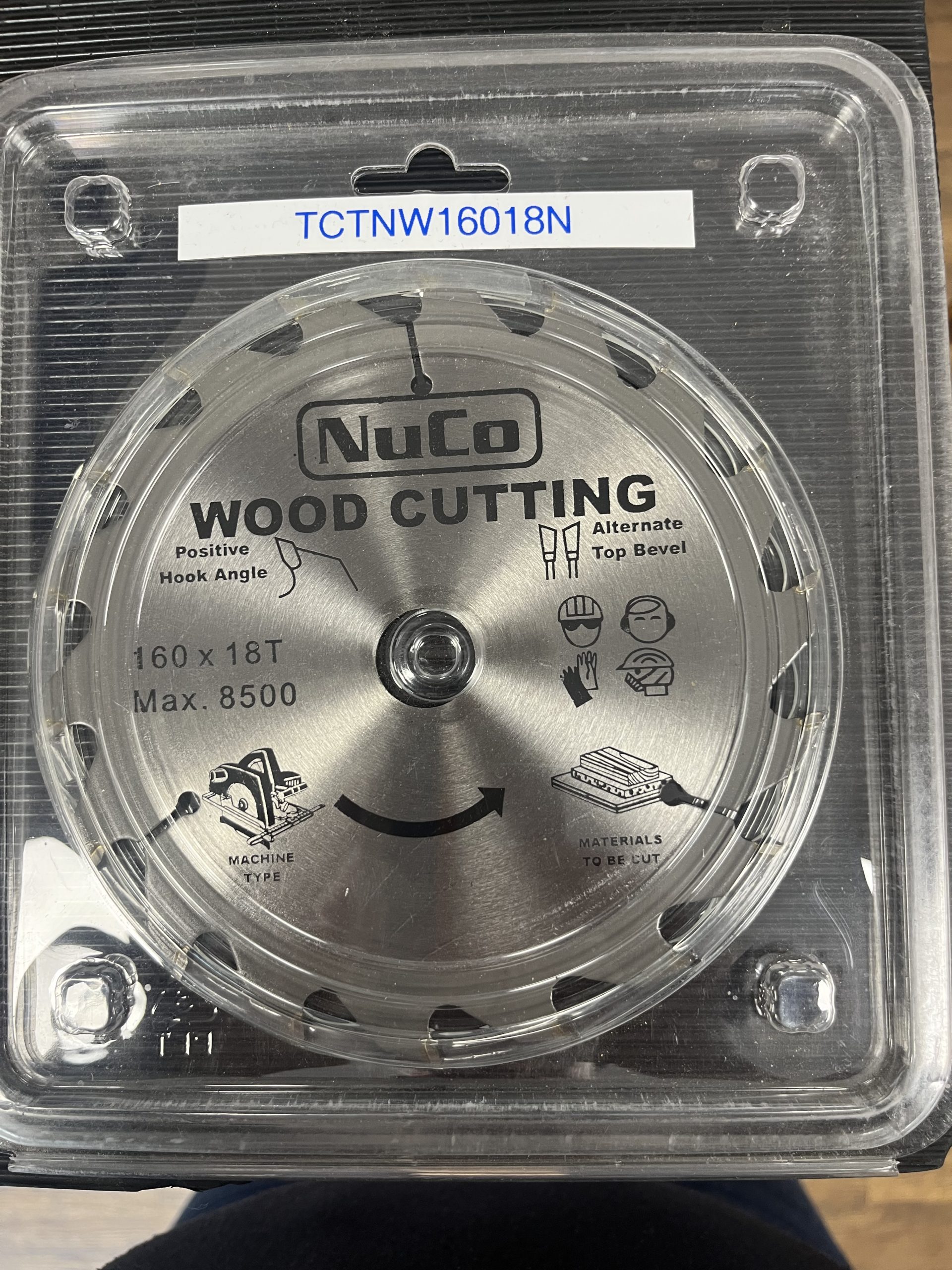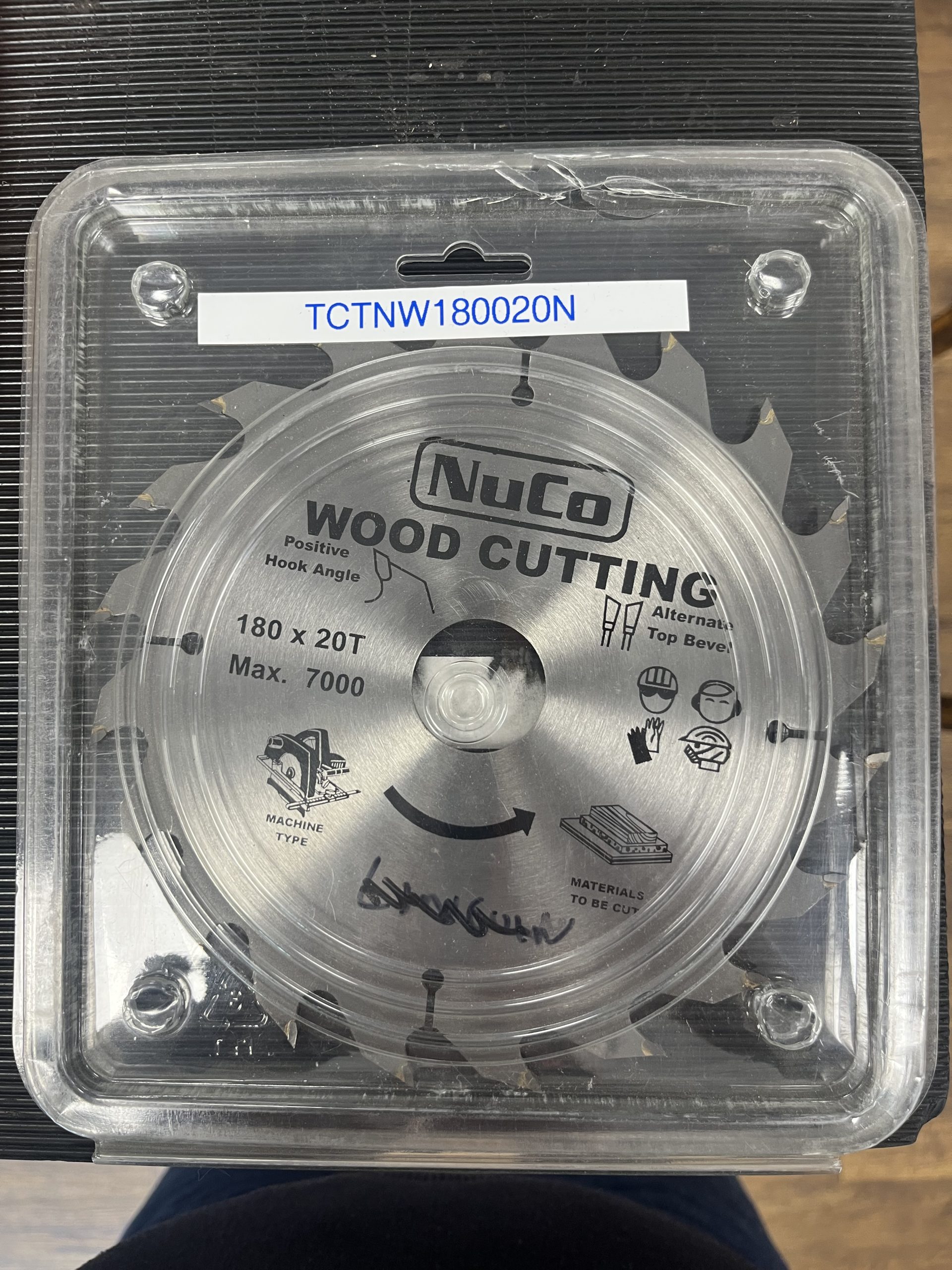Nuco TCT wood cutting blade 180mm diameter with 20 teeth and positive hook angle for timber work.
