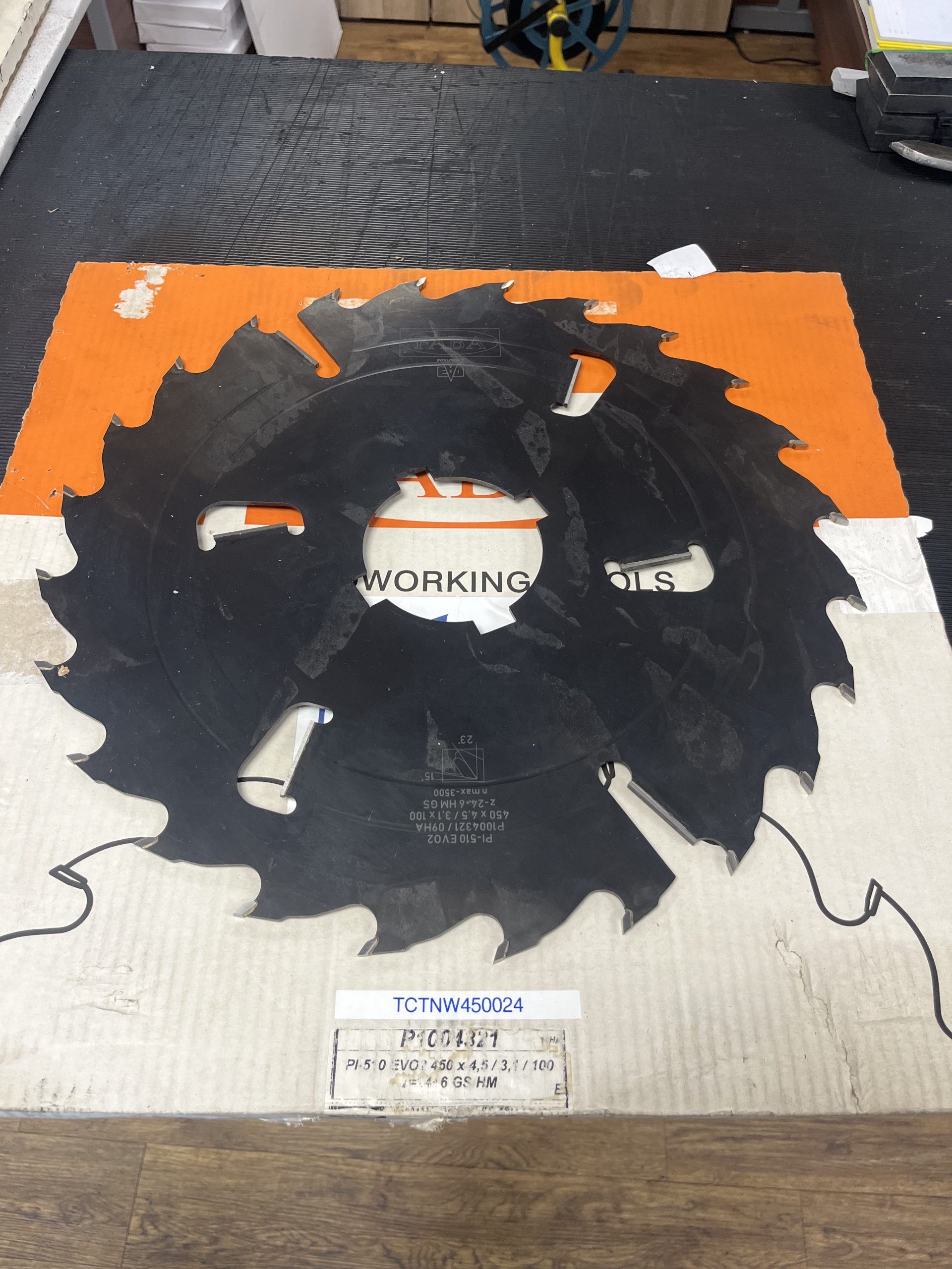Heavy duty TCT circular saw blade 450mm diameter with 100mm bore and 24 teeth for demanding applications.
